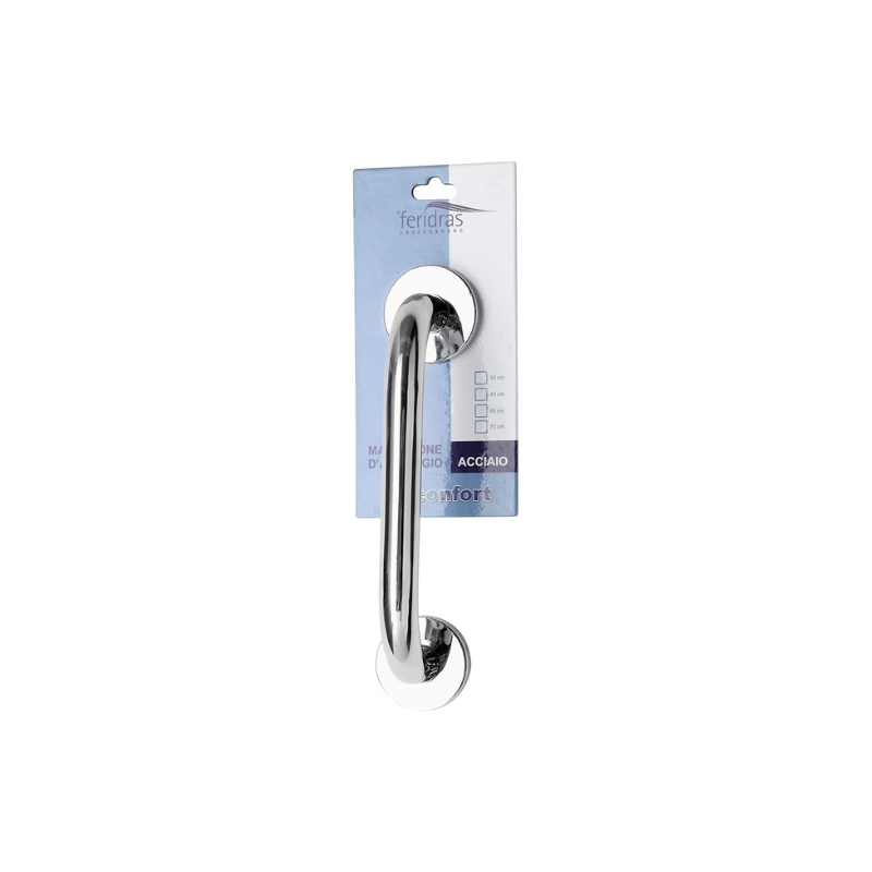 Il maniglione di sicurezza lineare da 30 cm di Feridras, della linea Comfort, è l'accessorio perfetto per garantire supporto e sicurezza nelle zone bagno, particolarmente indicato per persone con disabilità o mobilità ridotta. Realizzato in acciaio inox di alta qualità, con finitura cromo lucido, offre una presa stabile e sicura, contribuendo a prevenire scivolamenti e cadute.