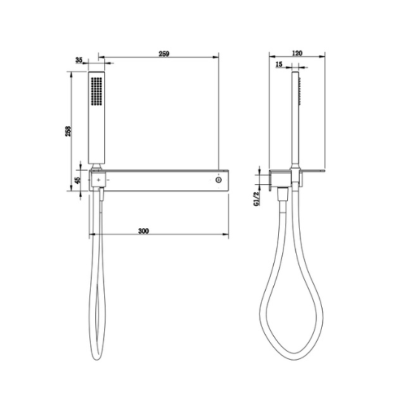 Il kit doccia quadro Elliot di Lara, realizzato in ottone con finitura cromo lucido, include una doccetta quadrata, un flessibile in PVC silver da 150 cm e un ripiano dal design elegante e funzionale. Ideale per arricchire il tuo bagno con stile e praticità, il ripiano offre spazio extra per riporre gli accessori, contribuendo a mantenere l'ambiente più ordinato e organizzato.