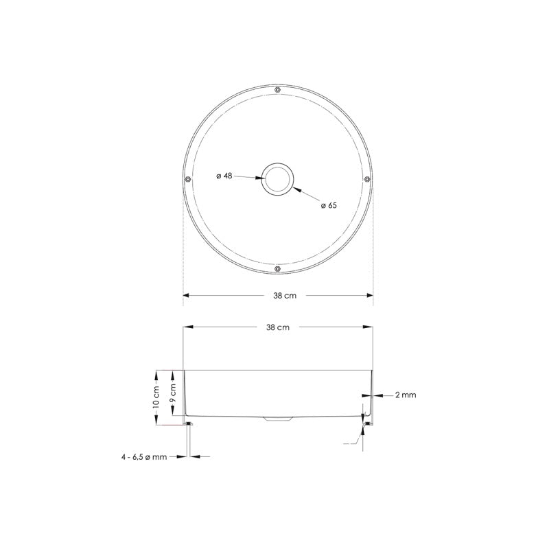 Lavabo in acciaio inox Ø38x10 h cm con piletta di scarico click/clack in tinta.