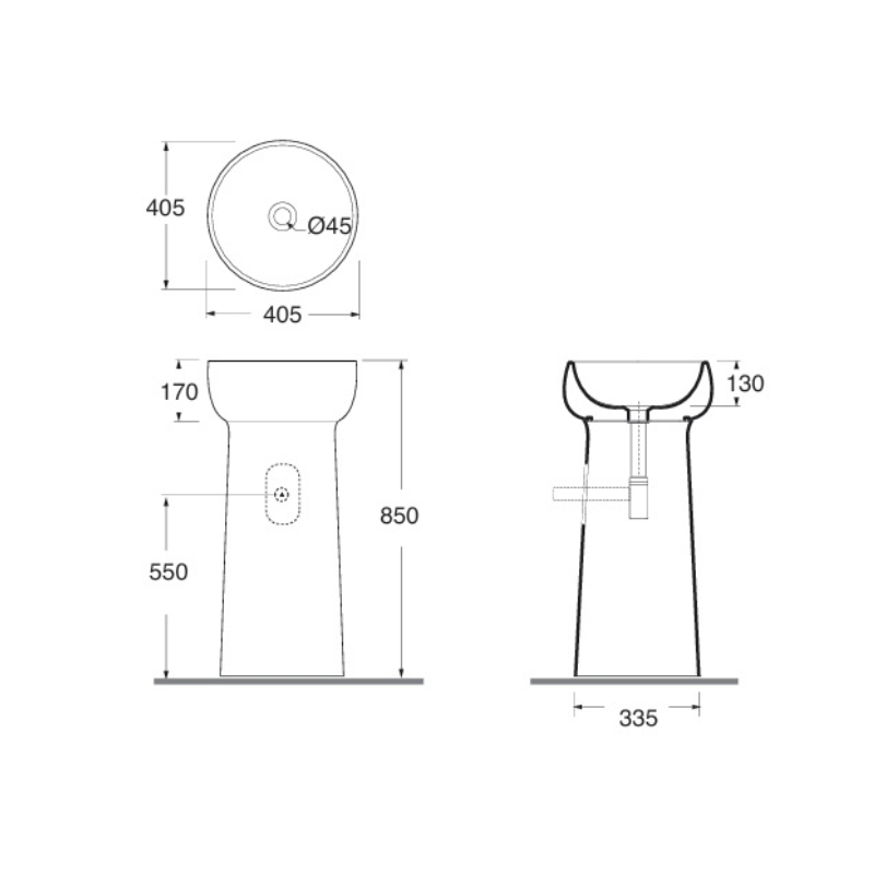 Lavabo Freestanding 40,5 cm Scarico a parete Bianco Lucido Graal