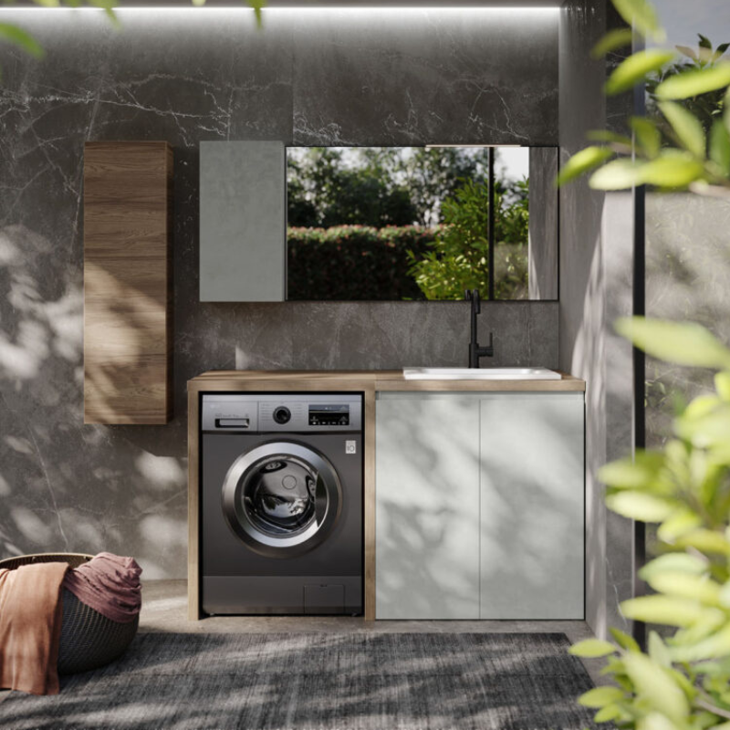 Planet 150 Lavatoio con Copri Lavatrice Ostuni Bianco/Rovere Trento