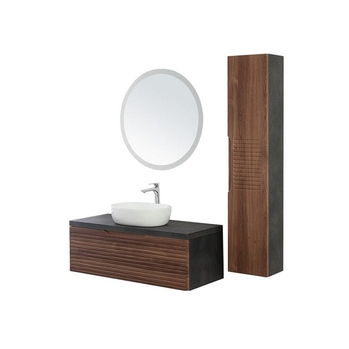 La composizione bagno sospesa Ravello combina eleganza e funzionalità, il top presenta una raffinata finitura ardesia, spesso 4 cm che aggiunge solidità e stile.